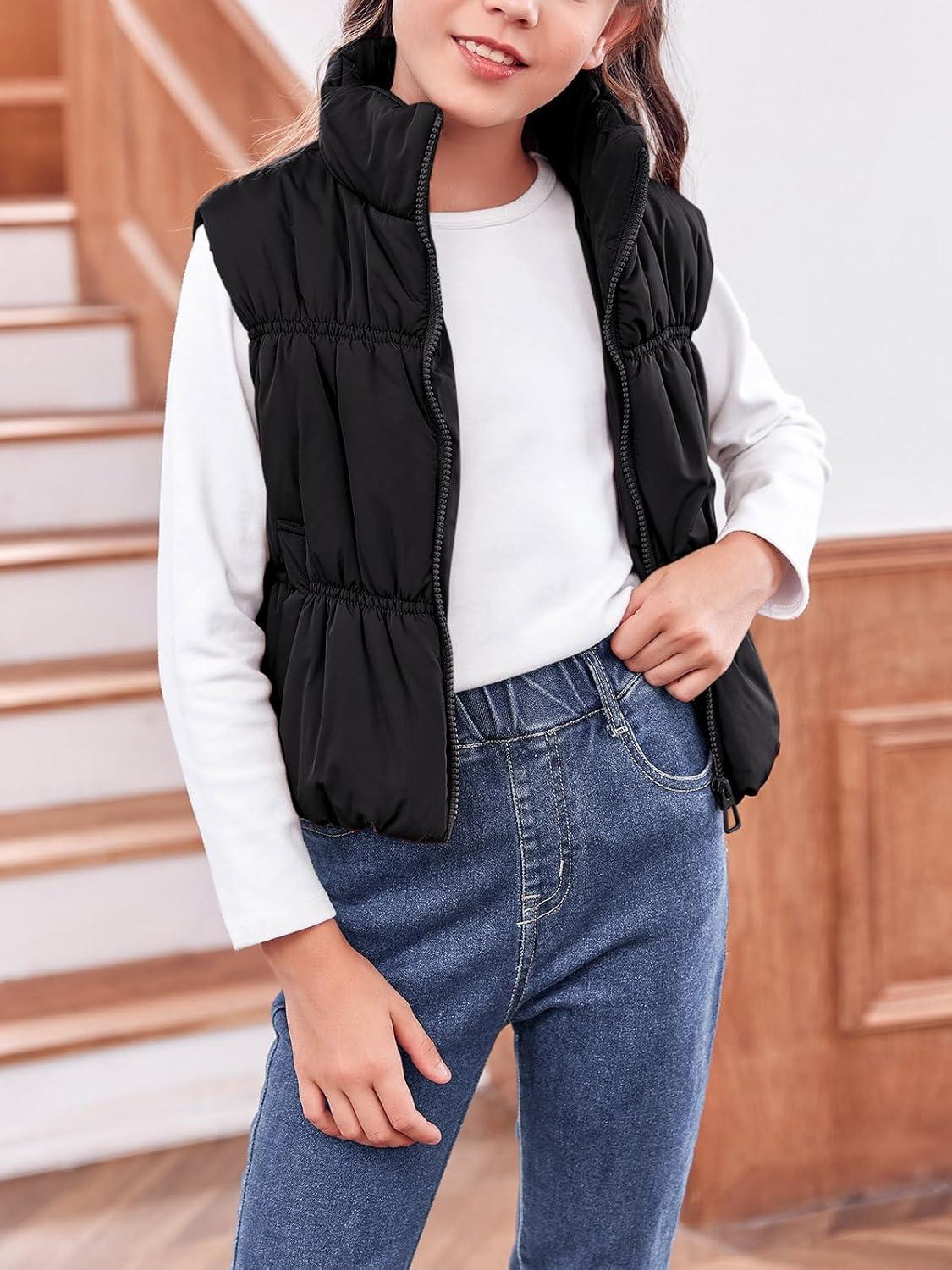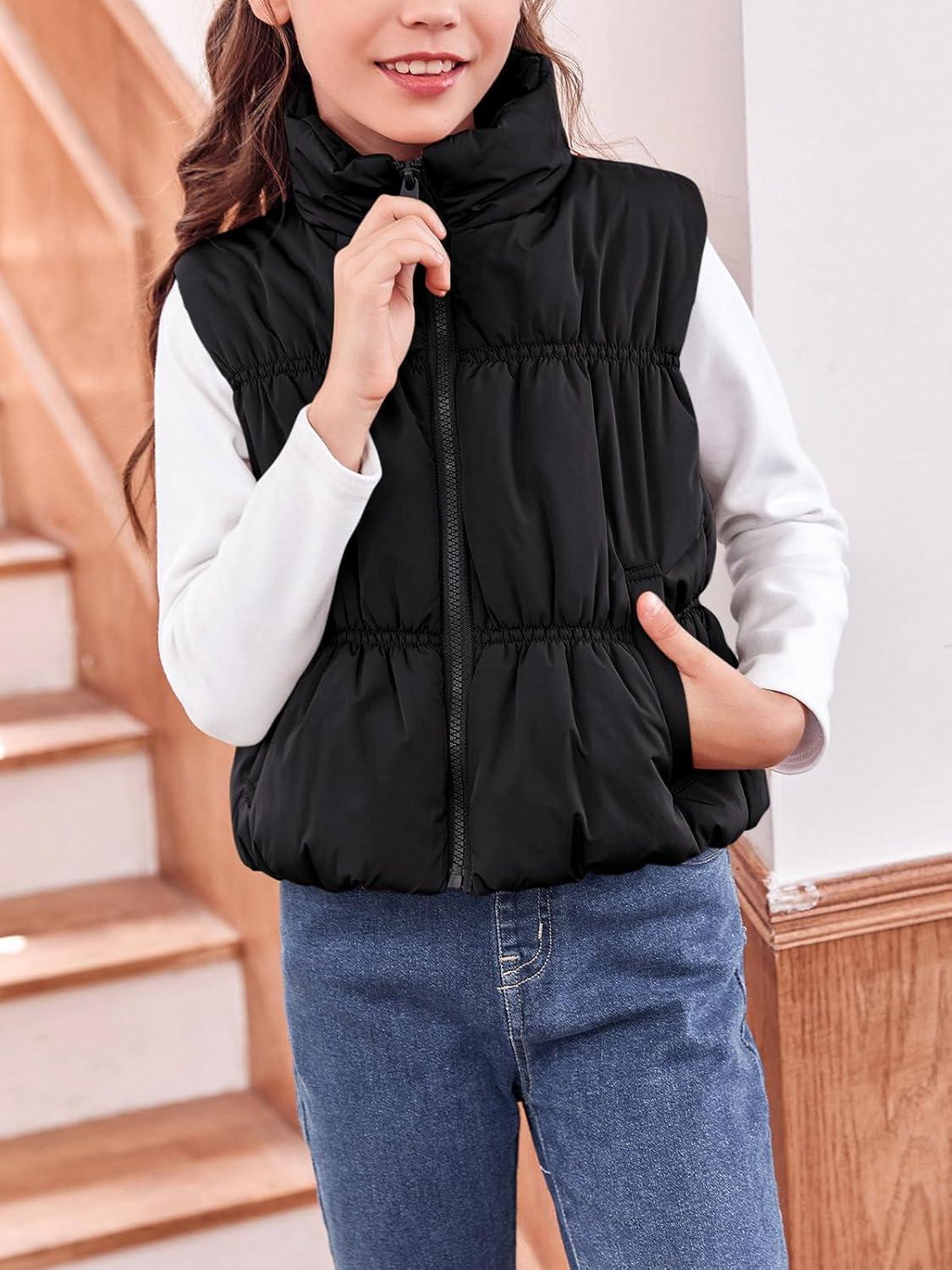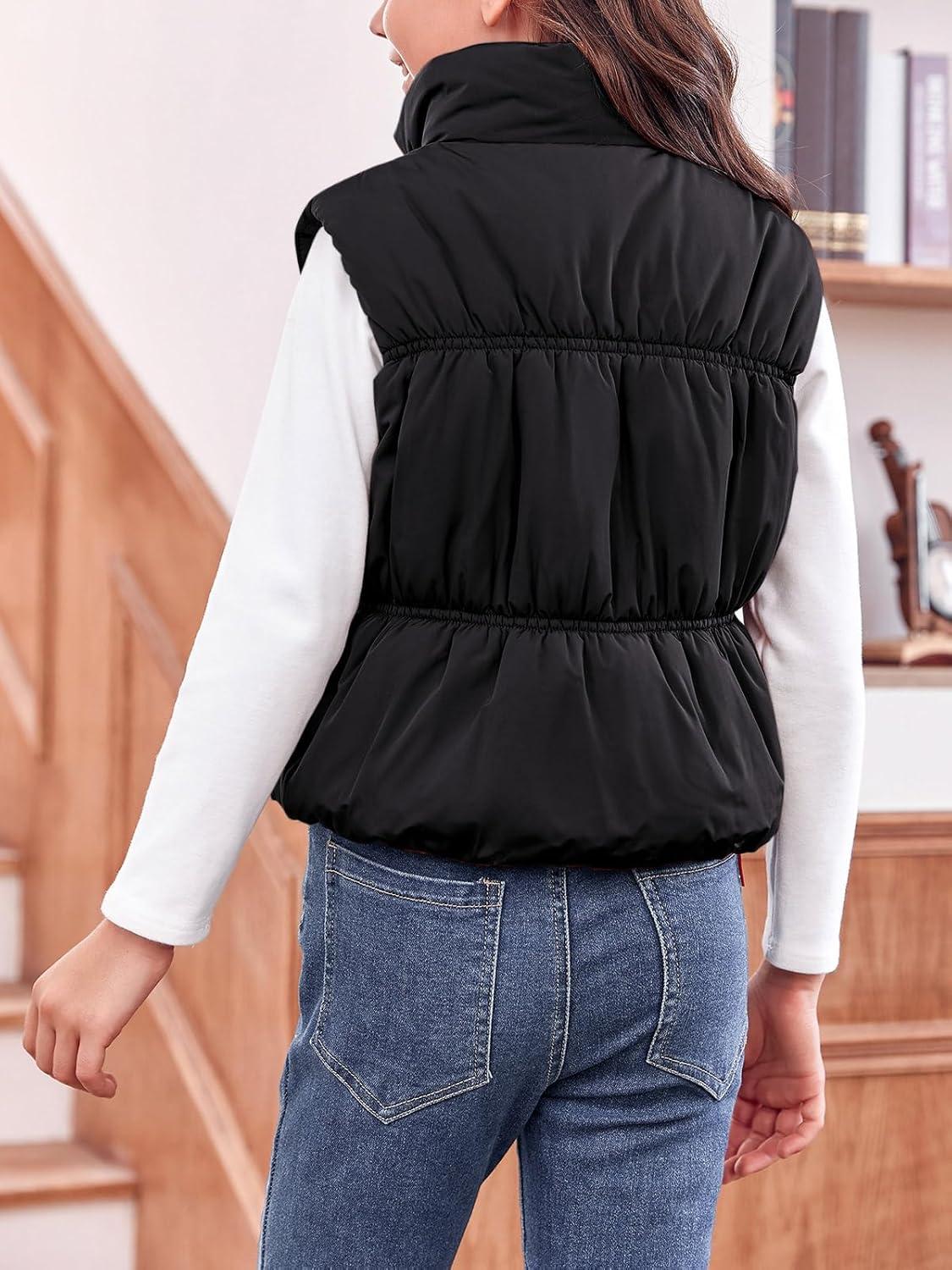 Imily Bela Girls Puffer Vest Stand Collar Sleeveless Warm Jacket Cute Outerwear With Pockets 7-14 Years(Black)