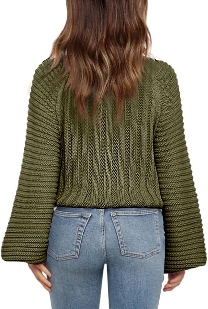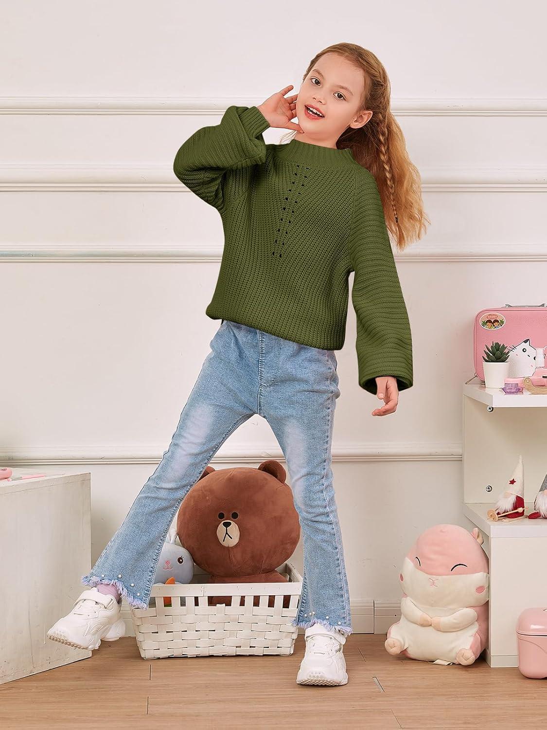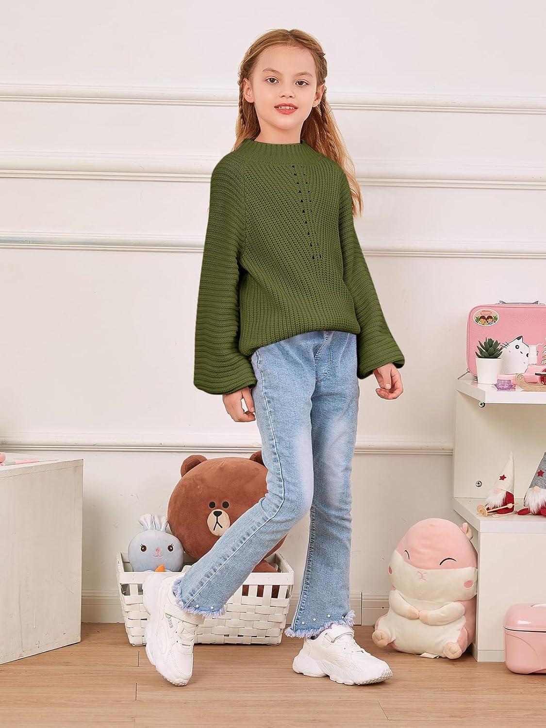 Imily Bela Girls Sweaters Kids Casual Bell Sleeve Knit Pullover Jumper Tops(Army Green)