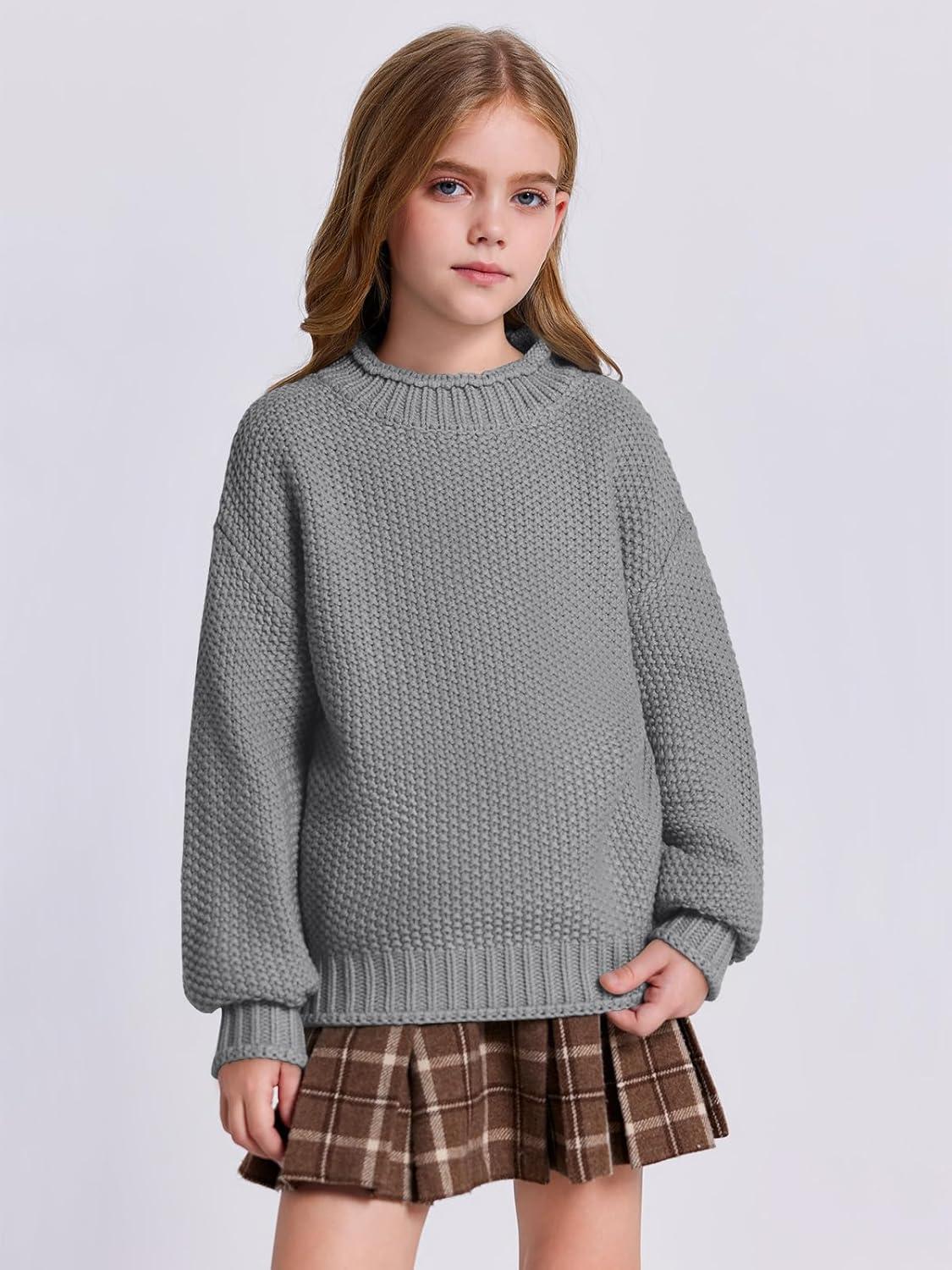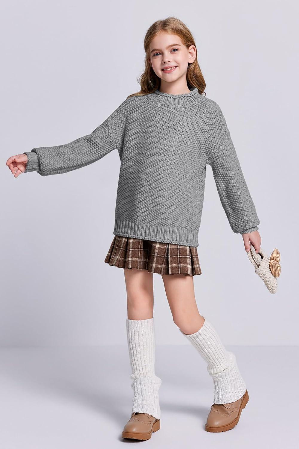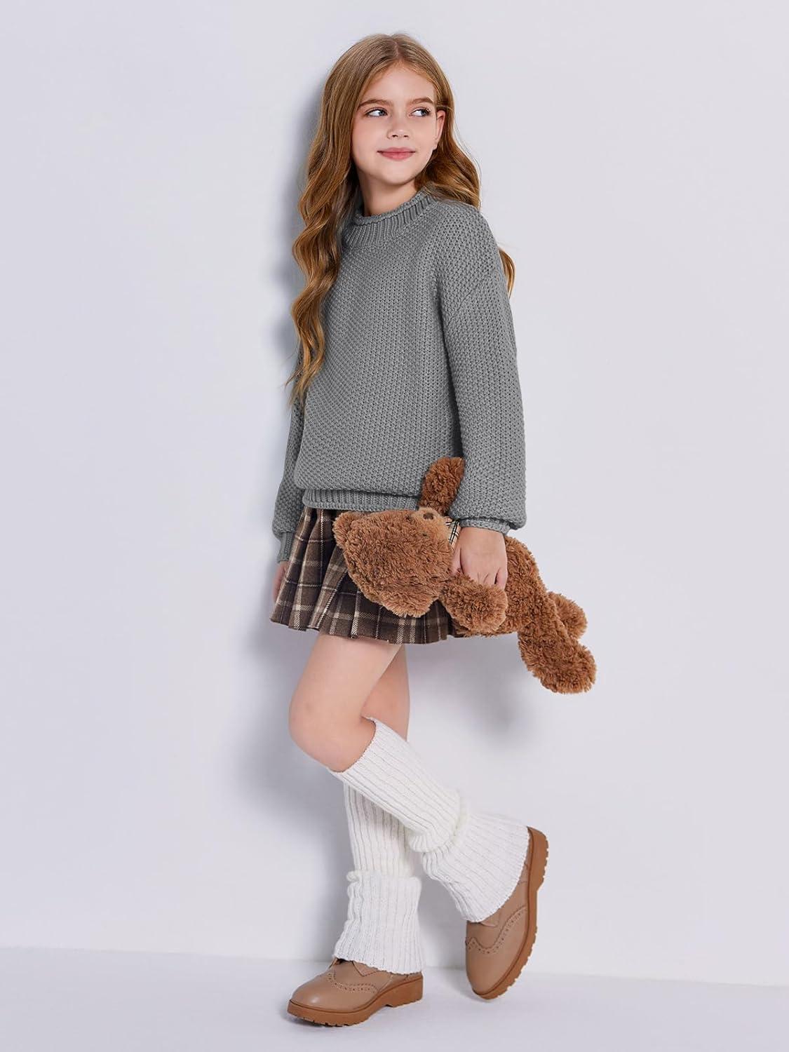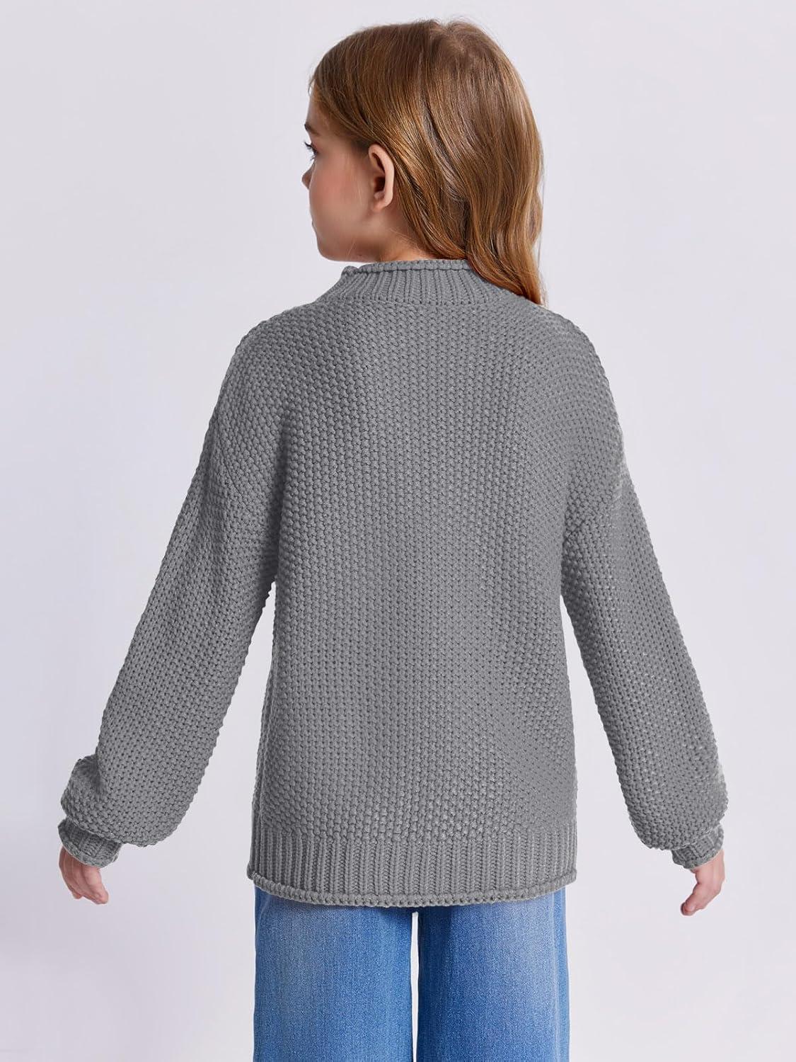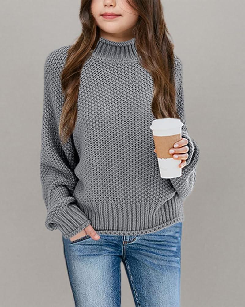 Imily Bela Girls Turtleneck Sweaters Kids Batwing Sleeve Knit Clothes Chunky Pullover Jumper(A-deep Grey)