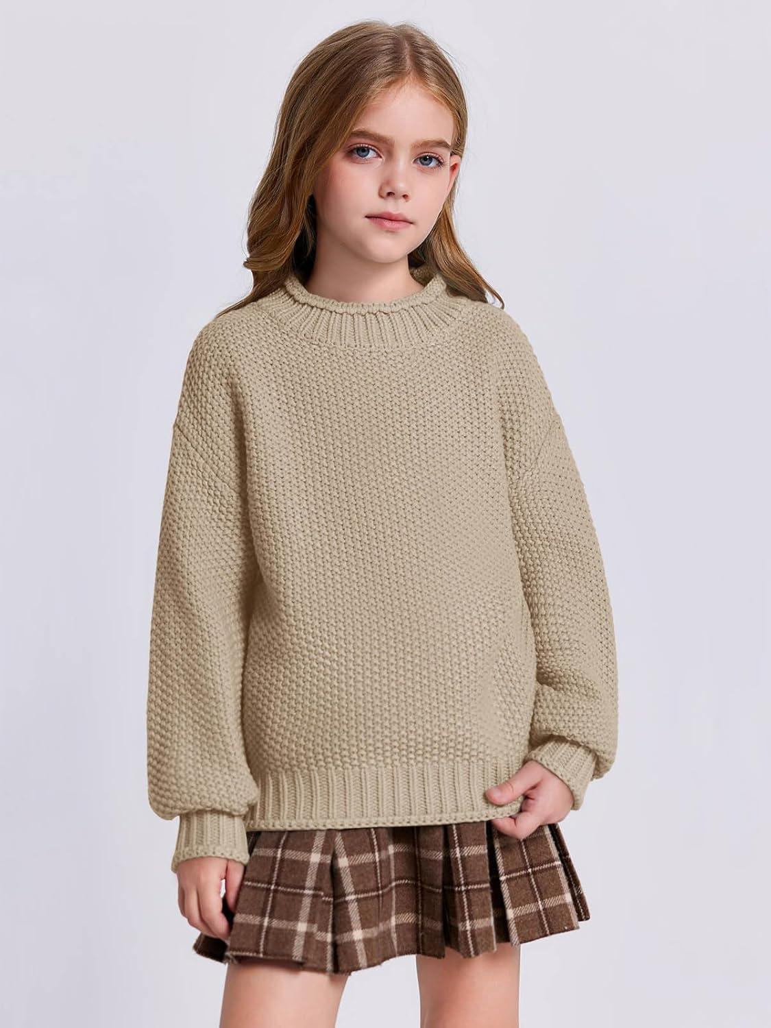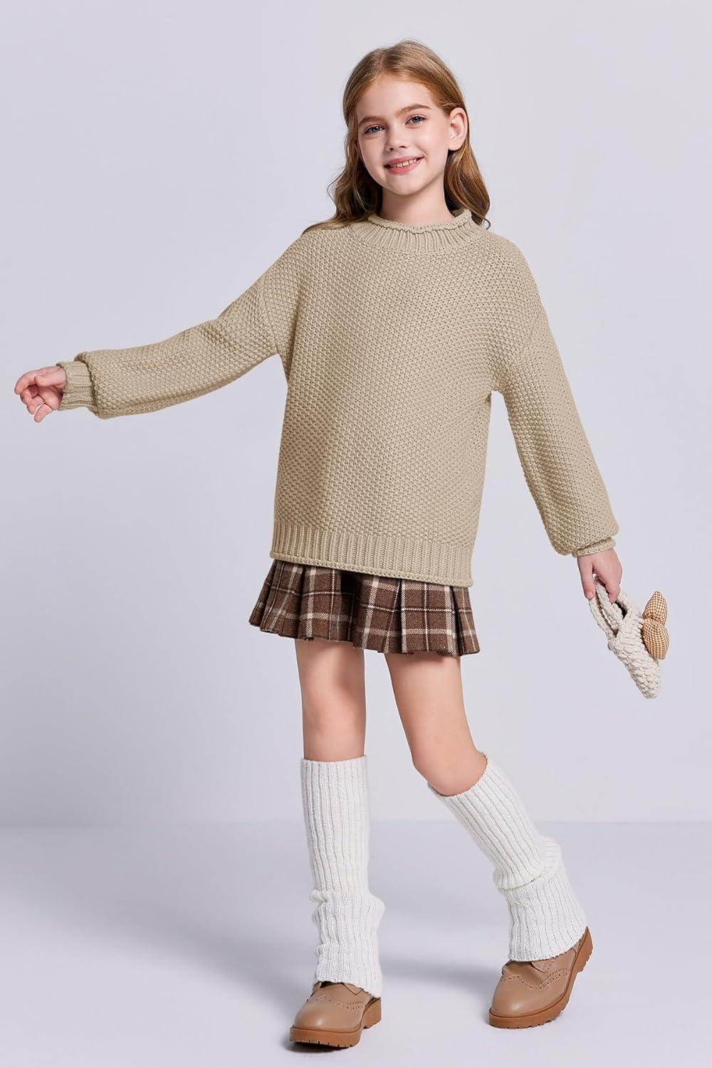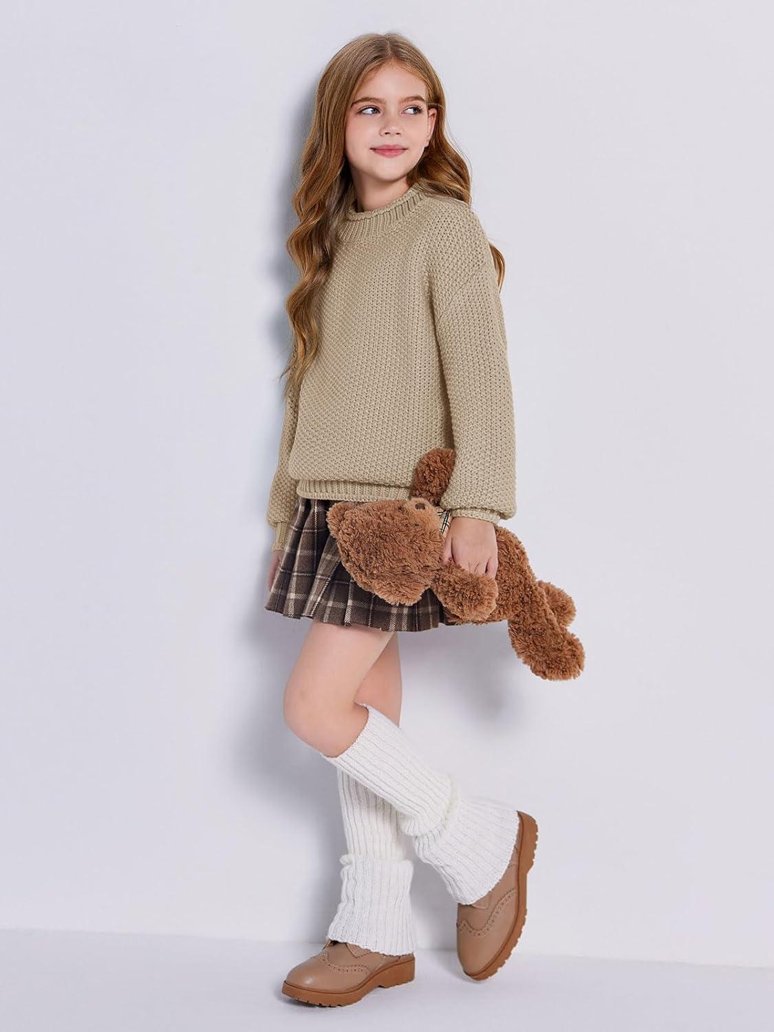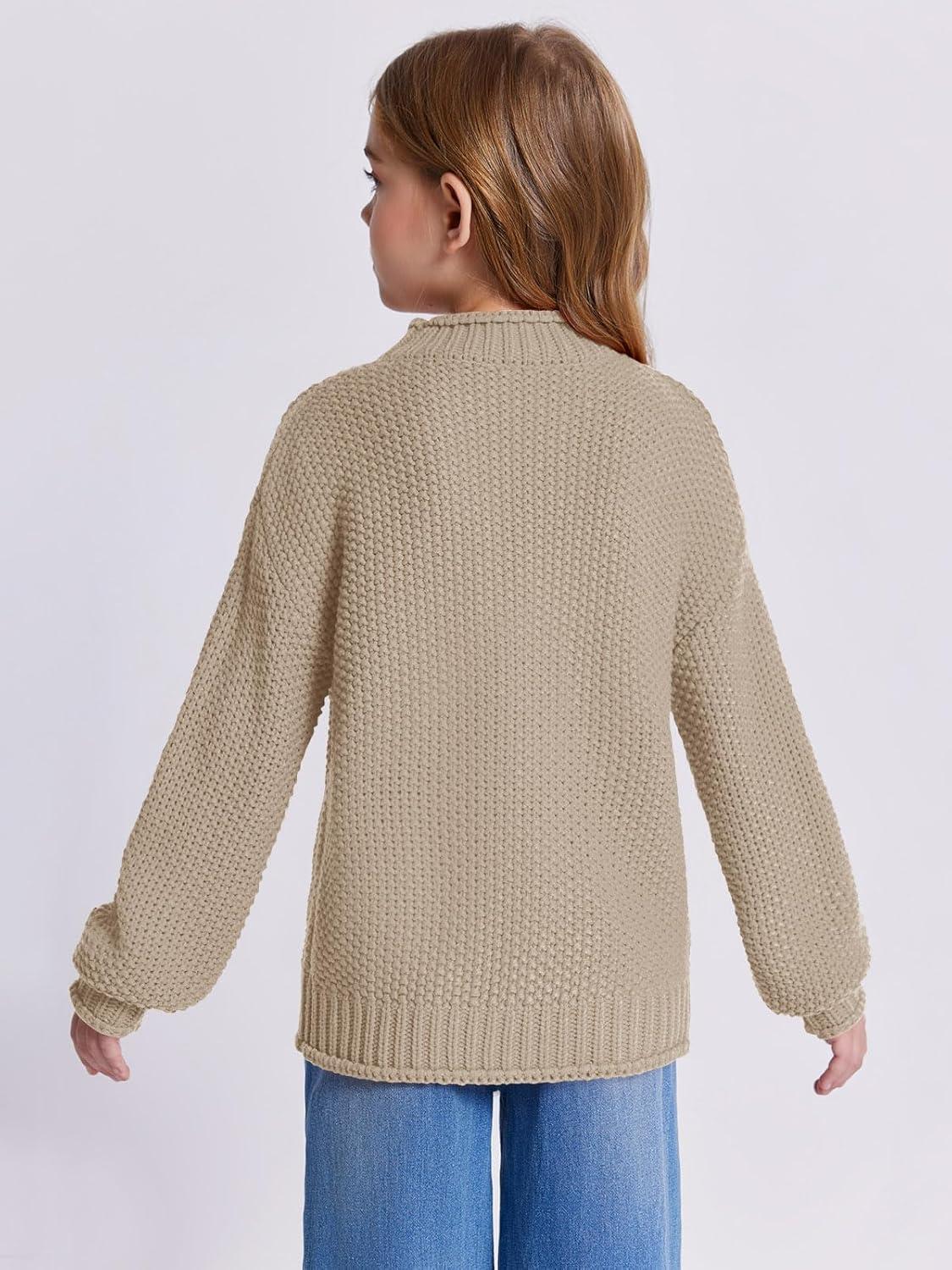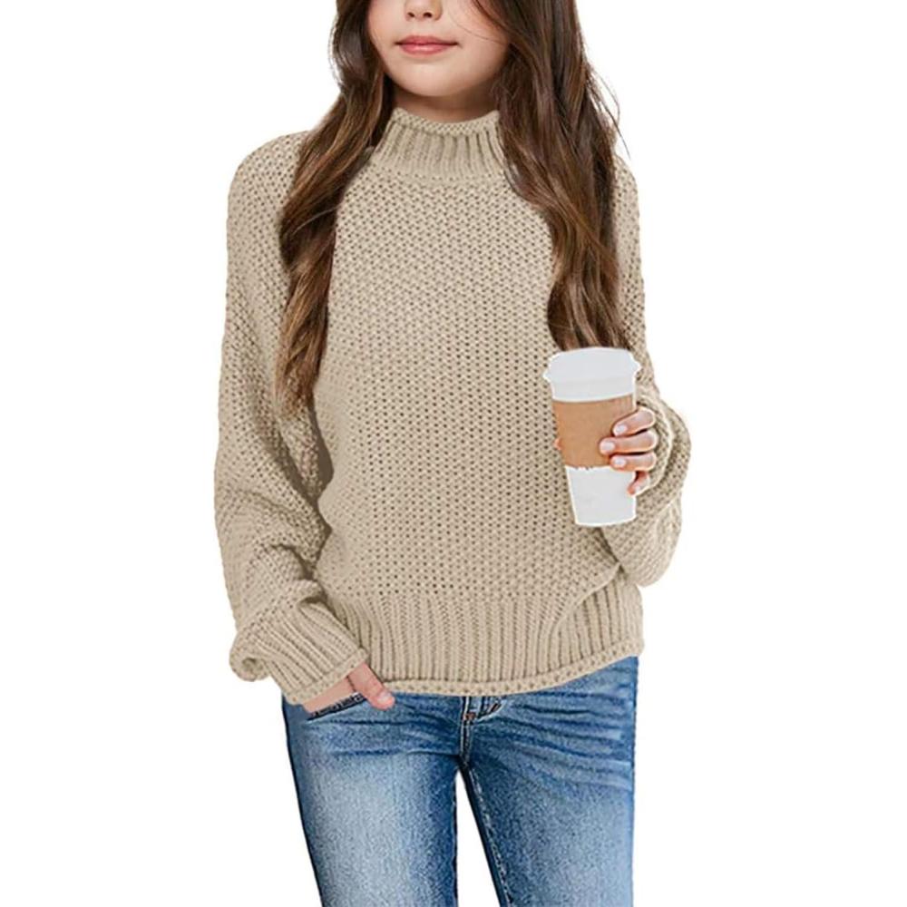 Imily Bela Girls Turtleneck Sweaters Kids Batwing Sleeve Knit Clothes Chunky Pullover Jumper(A-khaki)