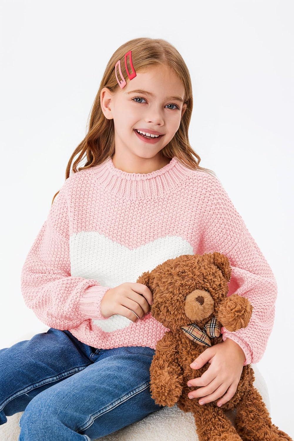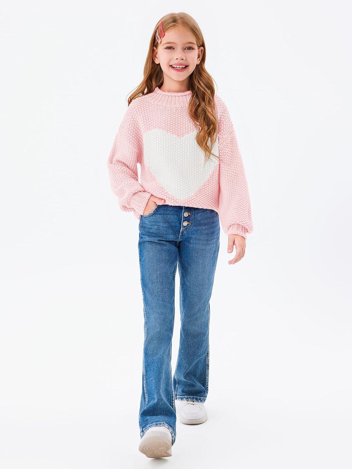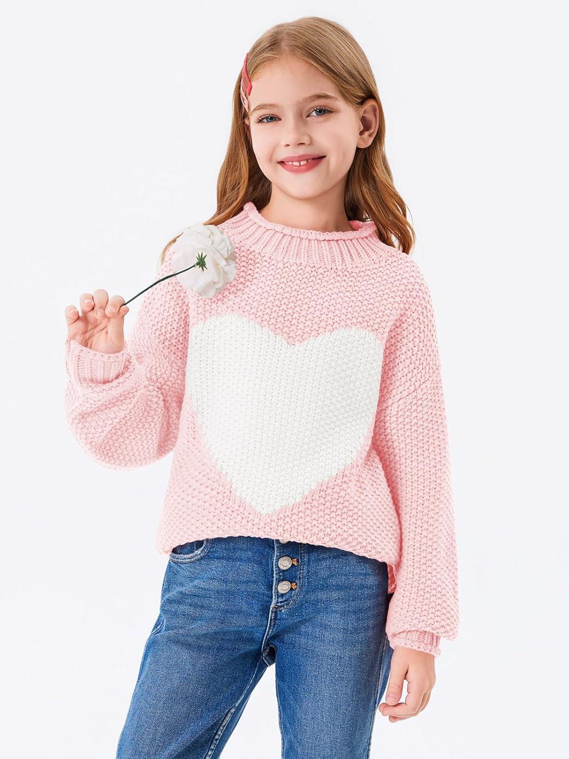 Imily Bela Girls Turtleneck Sweaters Kids Batwing Sleeve Knit Clothes Chunky Pullover Jumper(B-pink)