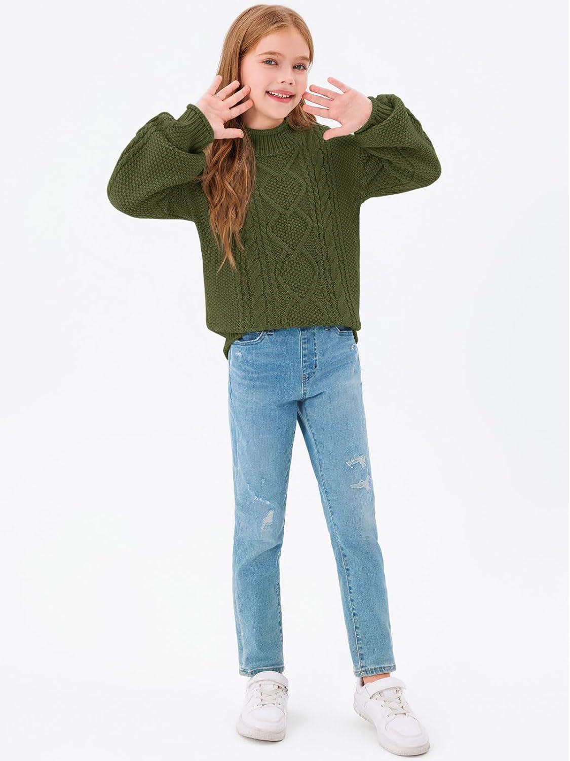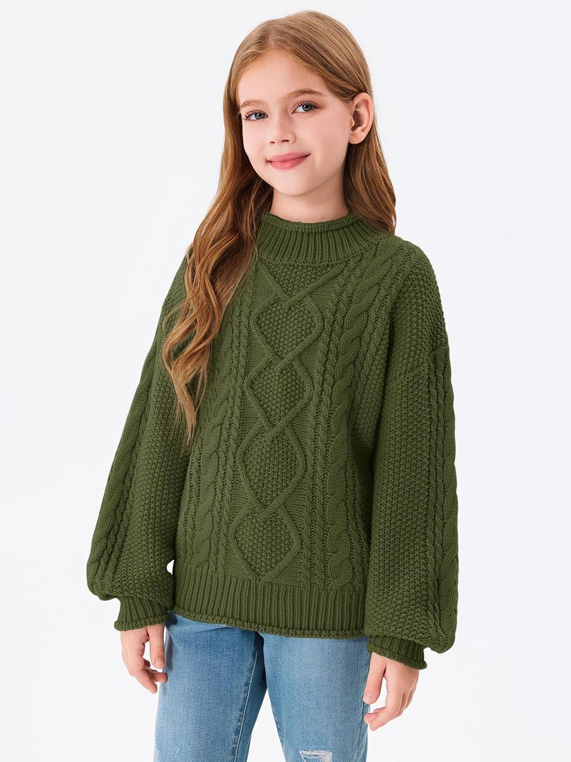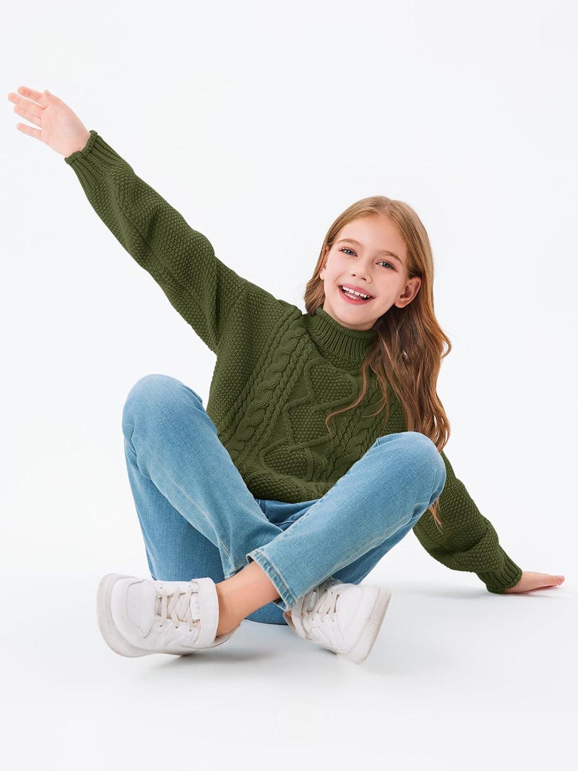 Imily Bela Girls Turtleneck Sweaters Kids Batwing Sleeve Knit Clothes Chunky Pullover Jumper(Z3-cable Knit-army Green)