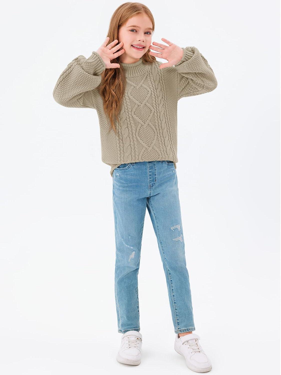 Imily Bela Girls Turtleneck Sweaters Kids Batwing Sleeve Knit Clothes Chunky Pullover Jumper(Z3-cable Knit-beige)