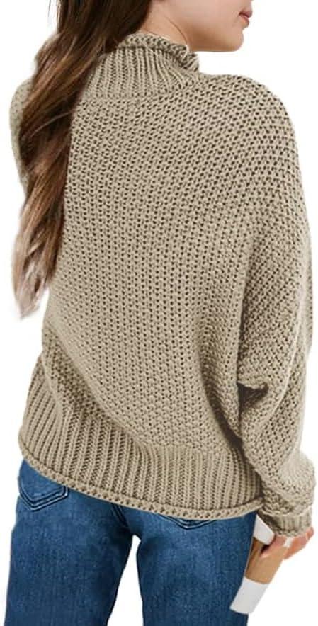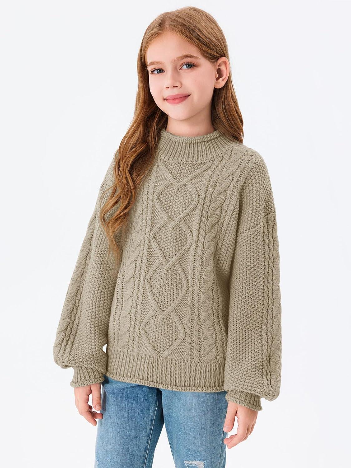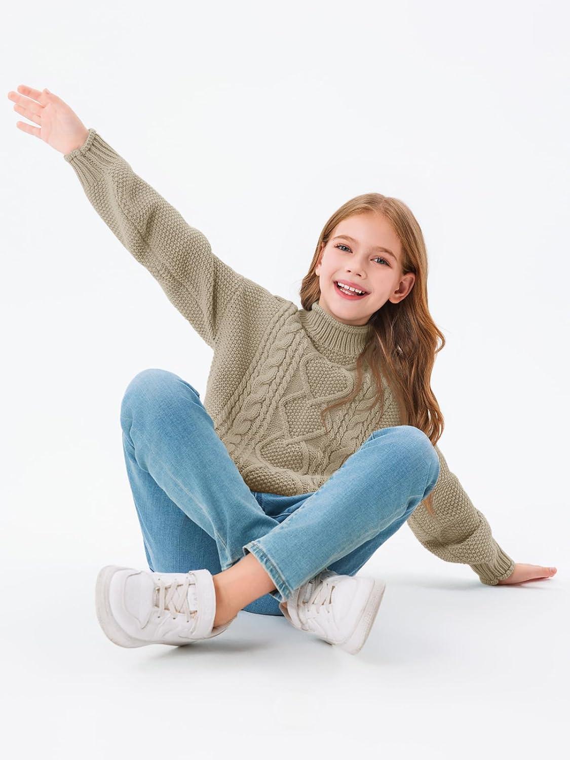 Imily Bela Girls Turtleneck Sweaters Kids Batwing Sleeve Knit Clothes Chunky Pullover Jumper(Z3-cable Knit-khaki)