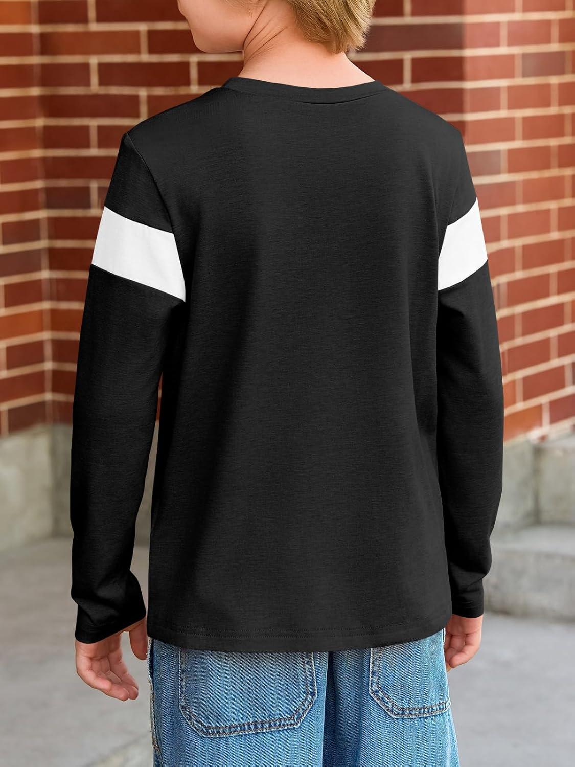 Imily Bela Kids Boys T Shirts Casual Long Sleeve Color Block Tops Crewneck Loose Basic Tees 5-14 Years(Black)