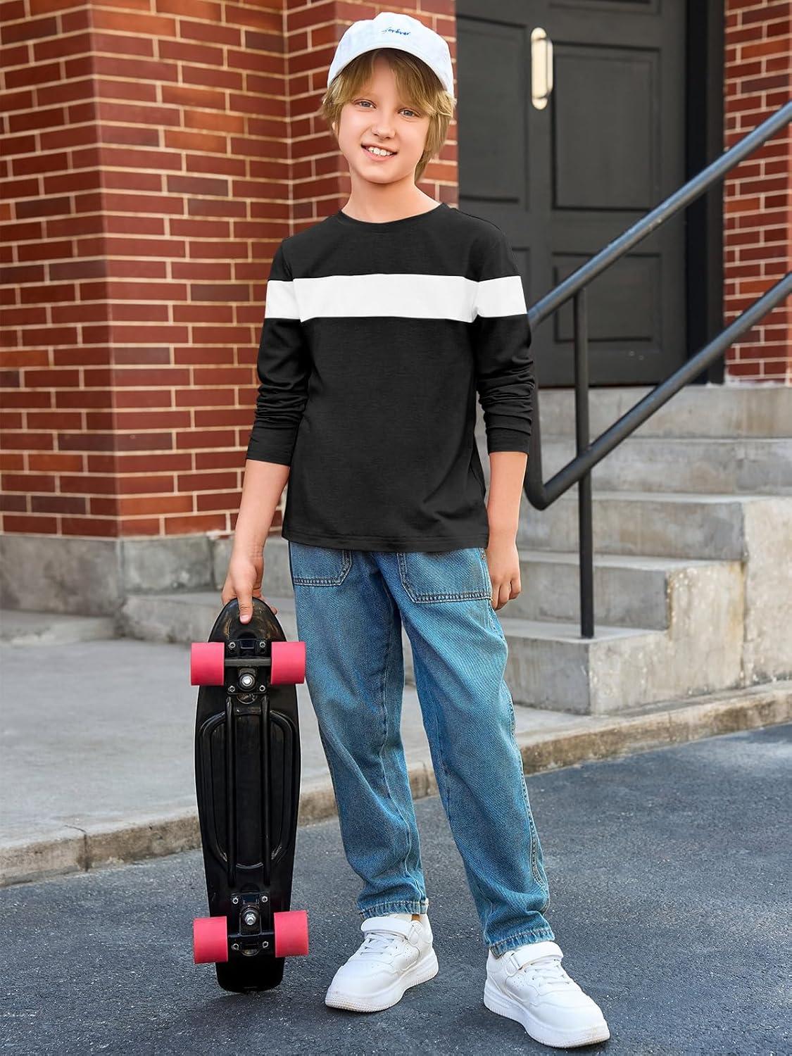 Get your hands on our newest Imily Bela Kids Boys T Shirts Casual Long Sleeve Color Block Tops Crewneck Loose Basic Tees 5-14 Years(Black) and enjoy a limited-time discount offer.