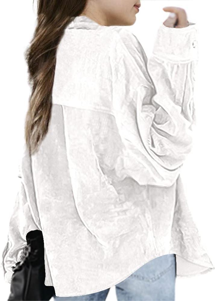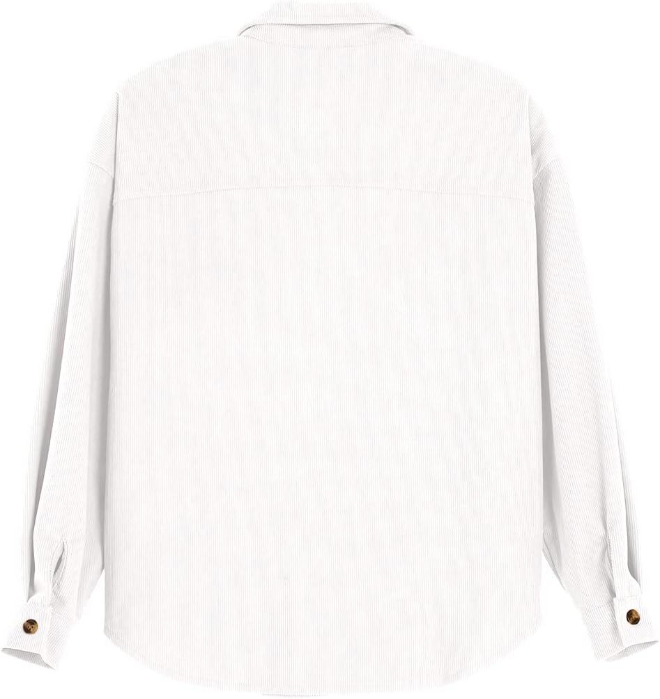 Imily Bela Kids Girls Corduroy Casual Button Down Long Sleeve Shirts with Pockets White