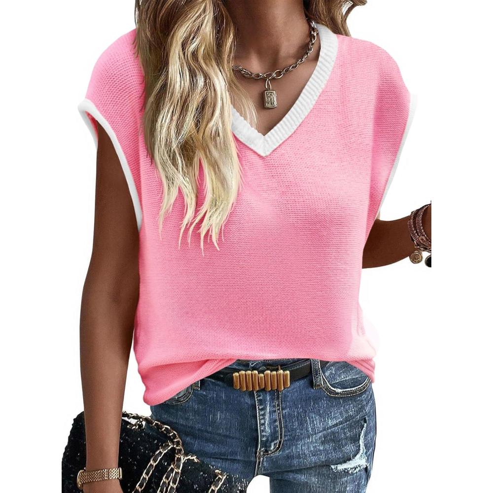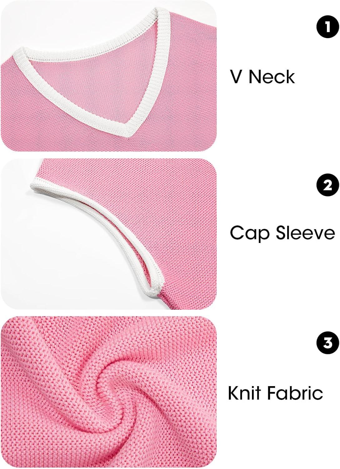 Imily Bela Summer Cap Sleeve Sweater Vest for Women Casual V Neck Sleeveless Knit Pullover Tank Tops 2025 Spring Shirts(Pink)