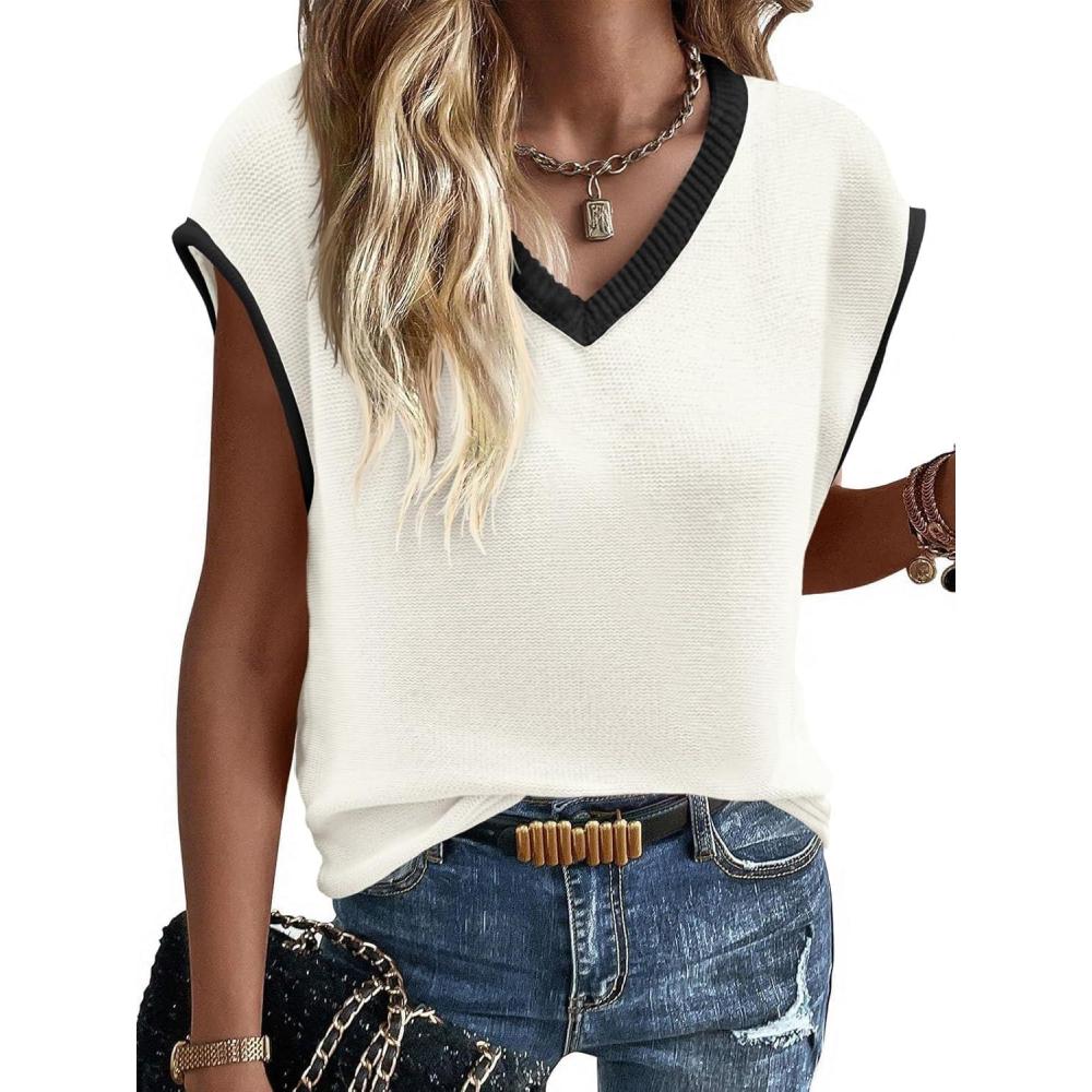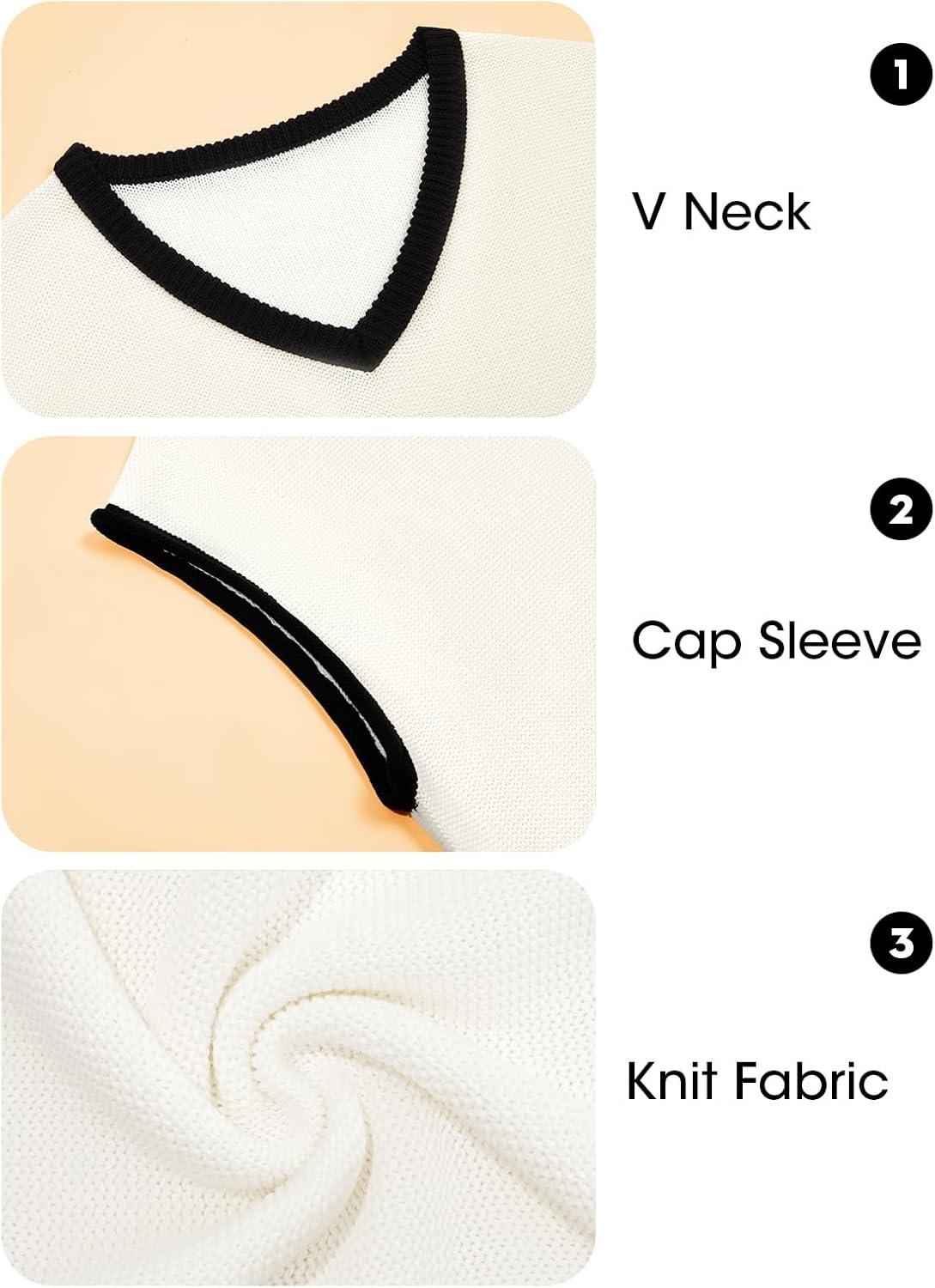 Imily Bela Summer Cap Sleeve Sweater Vest for Women Casual V Neck Sleeveless Knit Pullover Tank Tops 2025 Spring Shirts(White)