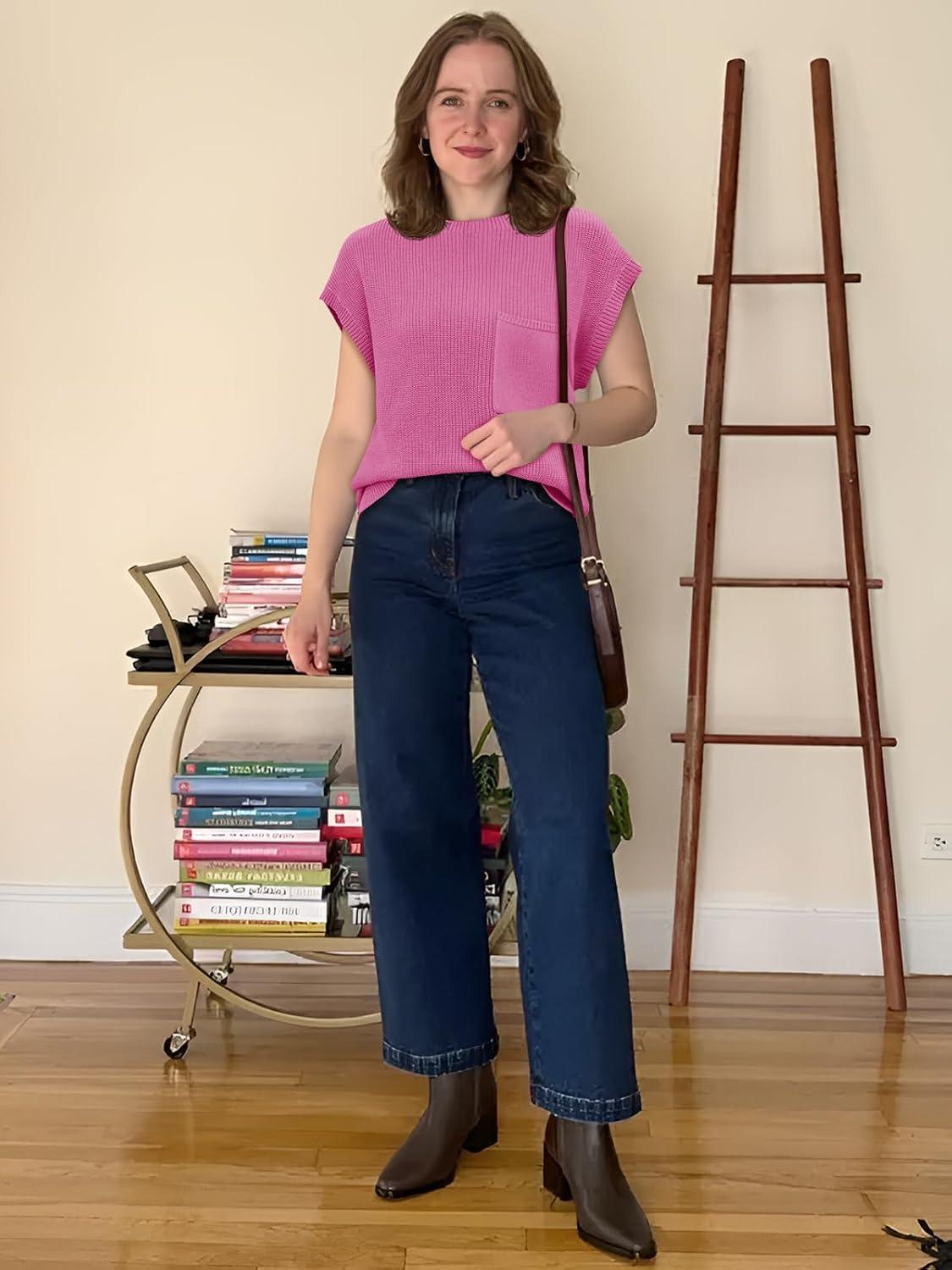 Be the first to review “Imily Bela Summer Fall Short Sleeve Sweater for Women 2026 Crew Neck Ribbed Knit Vests Trendy Pullover Tops(Pink)”