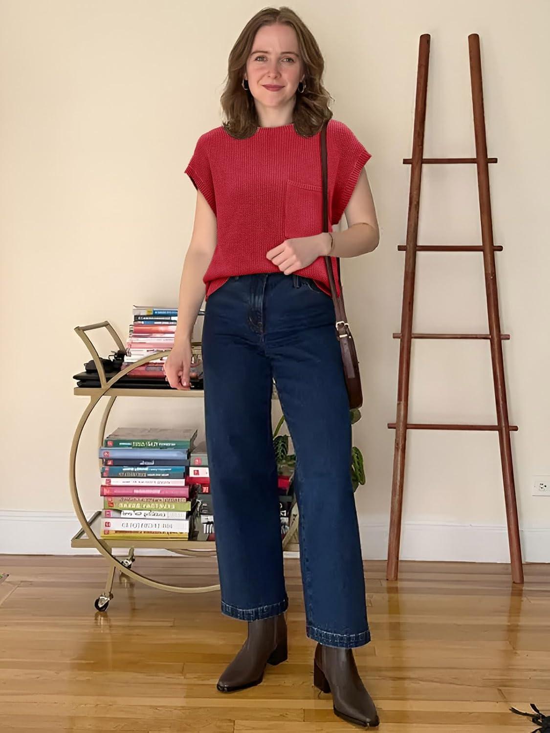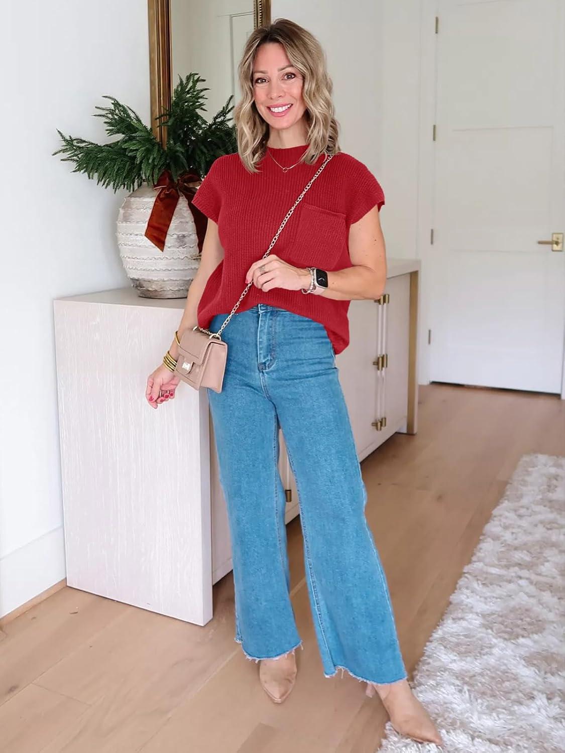 Be the first to review “Imily Bela Summer Fall Short Sleeve Sweater for Women 2026 Crew Neck Ribbed Knit Vests Trendy Pullover Tops(Red)”