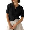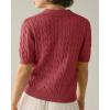 imageImily Bela Womens Cable Short Sleeve Sweaters Tops Solid Lapel V Neck Knit Casual Soft Pullover ShirtRed