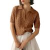 Imily Bela Women’s Cable Short Sleeve Sweaters Tops Solid Lapel V Neck Knit Casual Soft Pullover Shirt(Red Bean Paste)