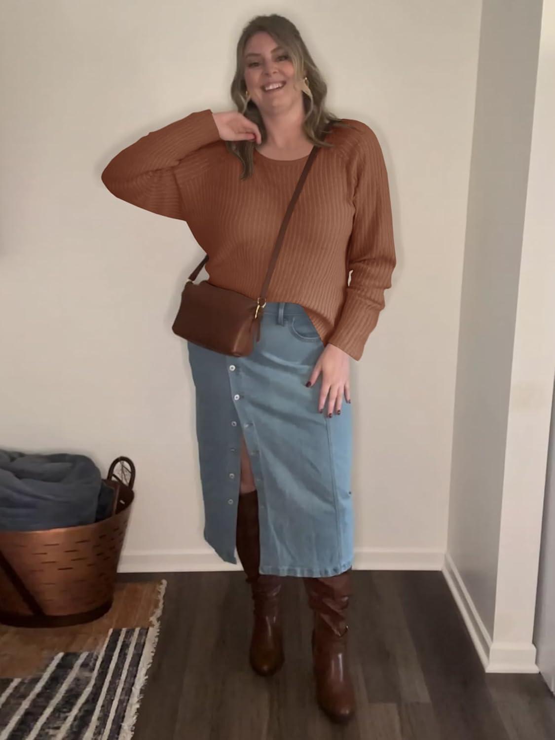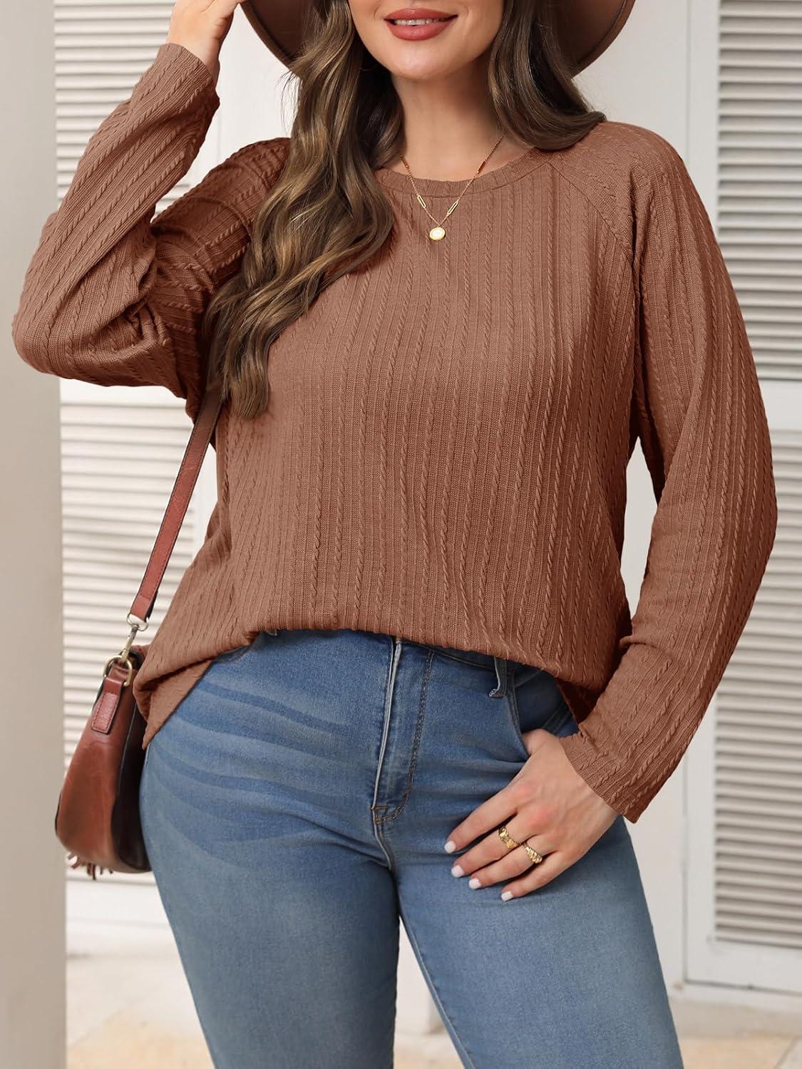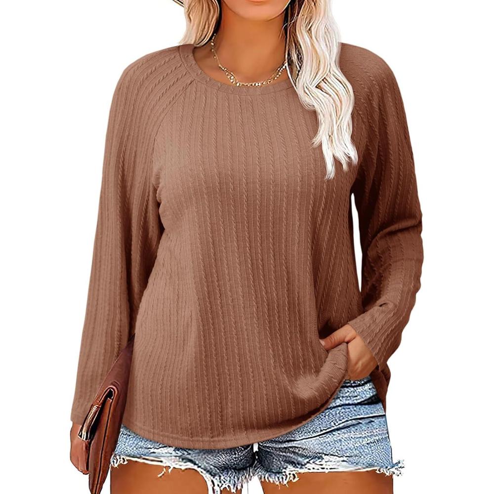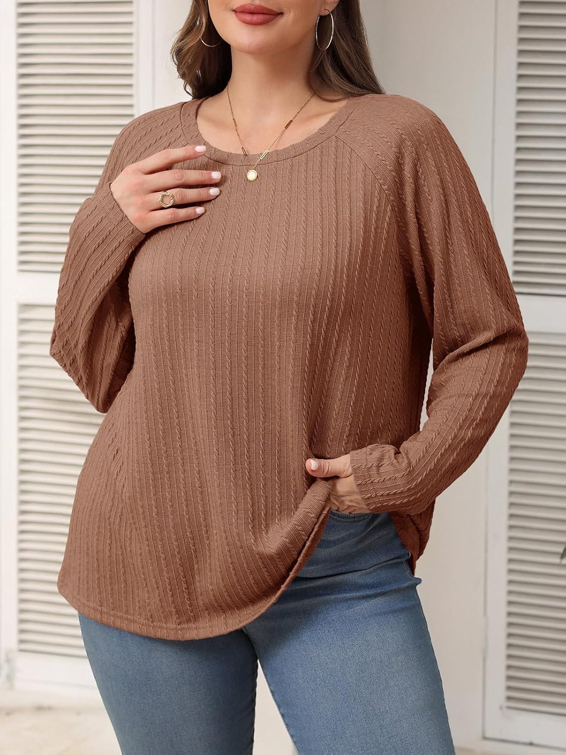 Imily Bela Womens Plus Size Tops Crewneck Long Sleeve Top Super Soft Shirts Oversized Basic Tees Loose Tunic(Brown)