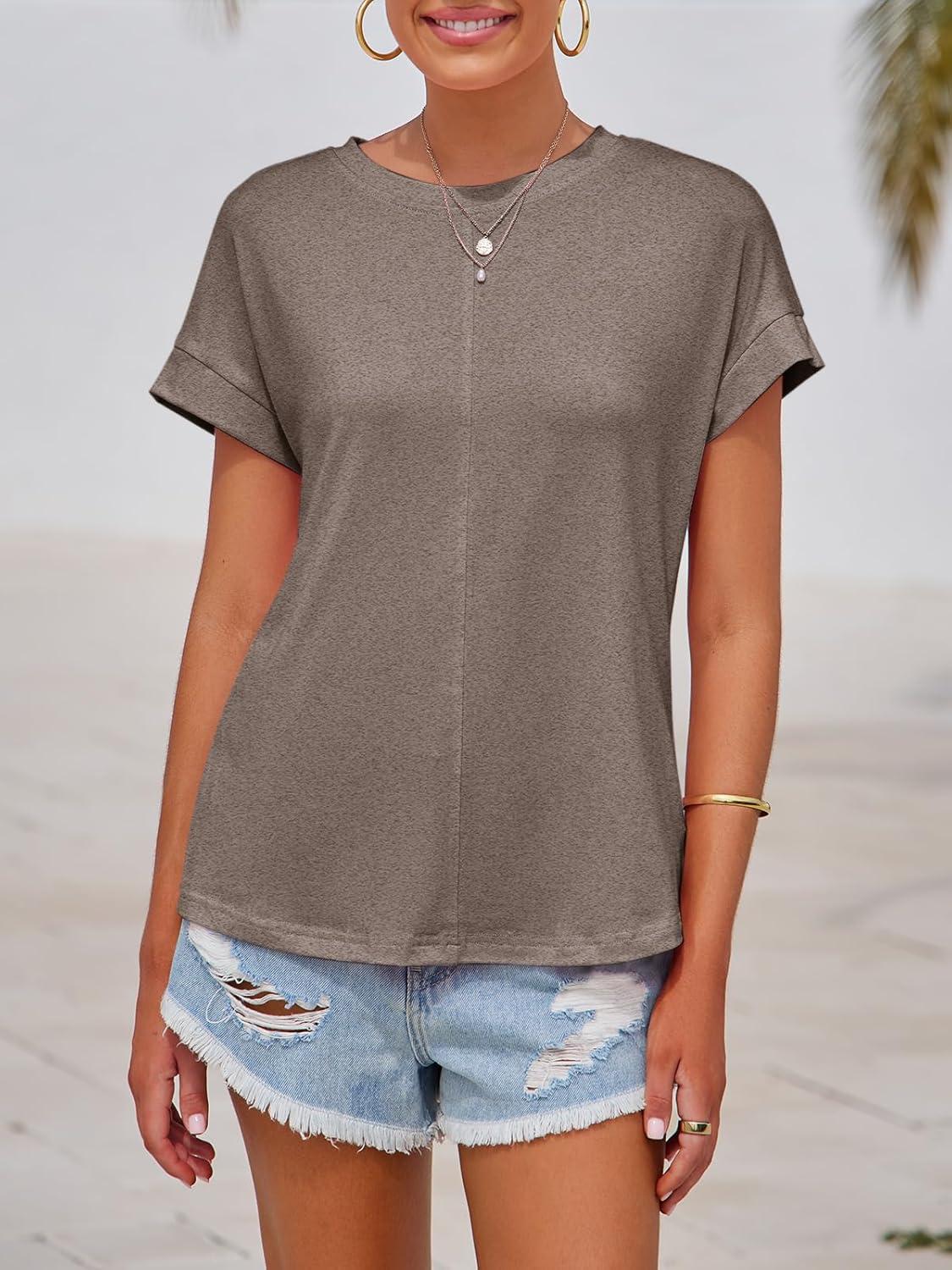Imily Bela Womens Short Sleeve T Shirts Summer Crew Neck Dressy Casual Tops Basic Trendy Tees(Coffee)