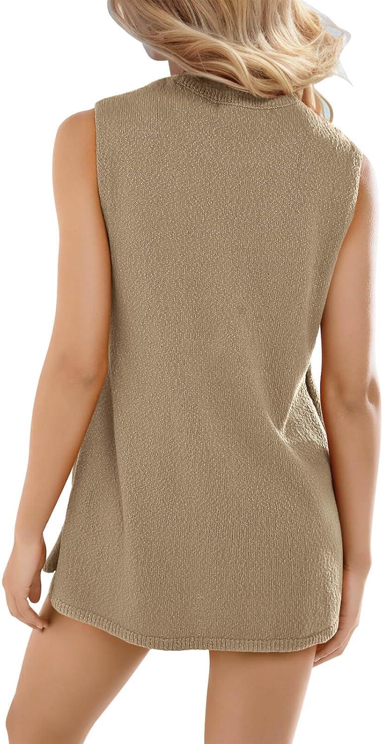 imageImily Bela Womens Summer Sweater Sets Sleeveless Knit Tank Tops Matching Shorts 2 Piece Beach Vacation OutfitsBeige