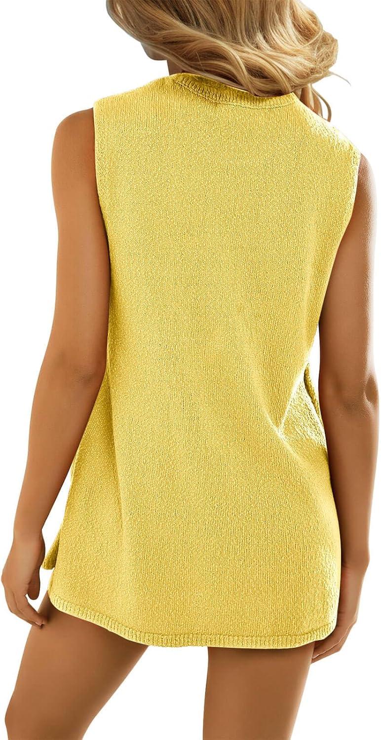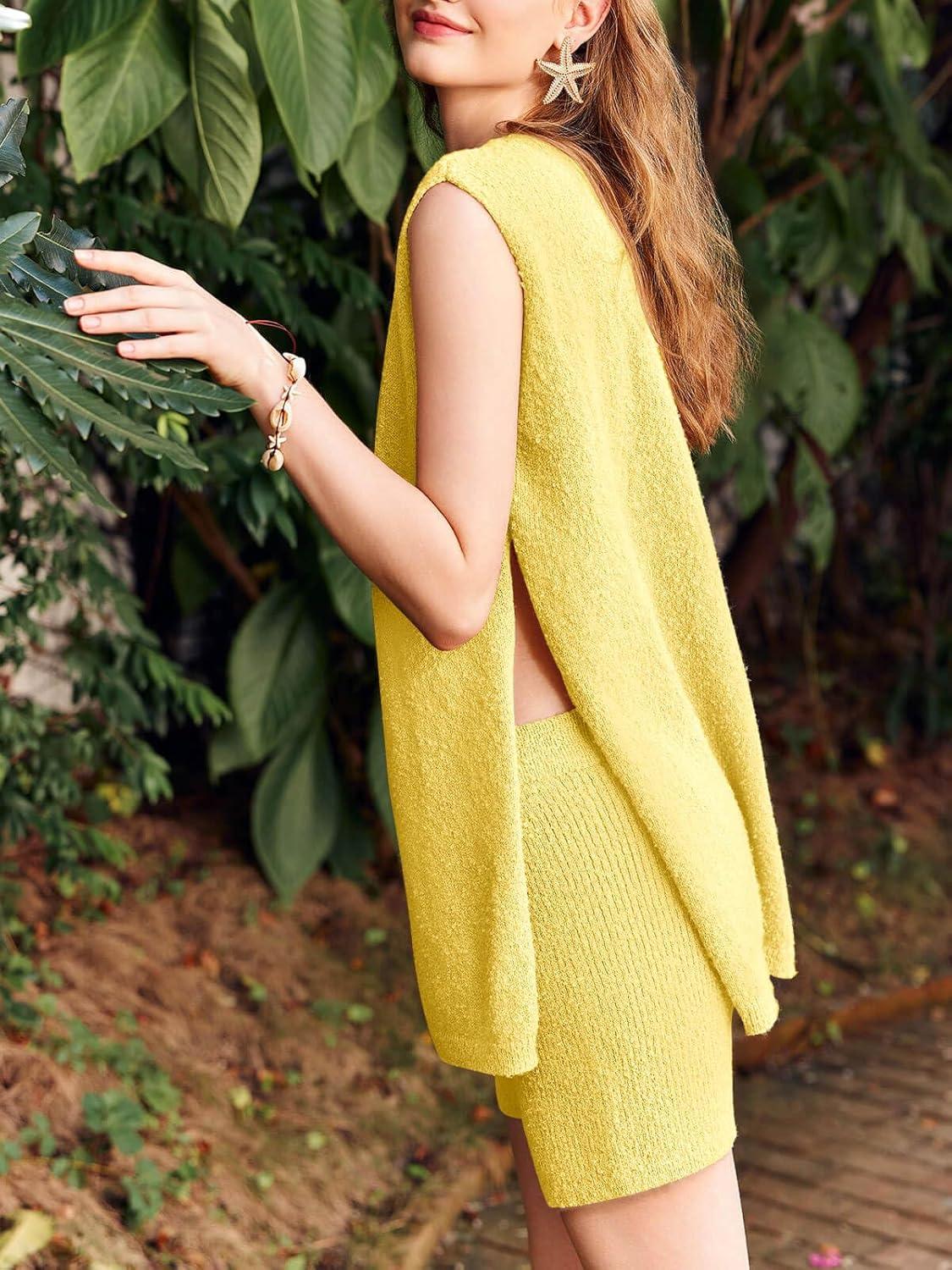 Imily Bela Womens Summer Sweater Sets Sleeveless Knit Tank Tops Matching Shorts 2 Piece Beach Vacation Outfits(Yellow)