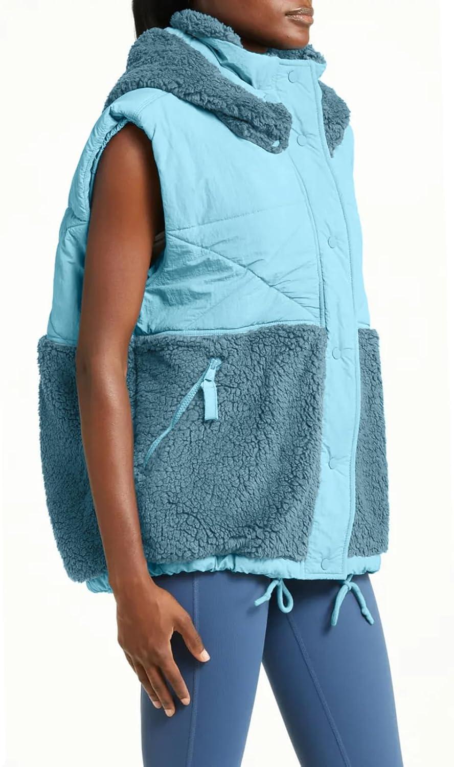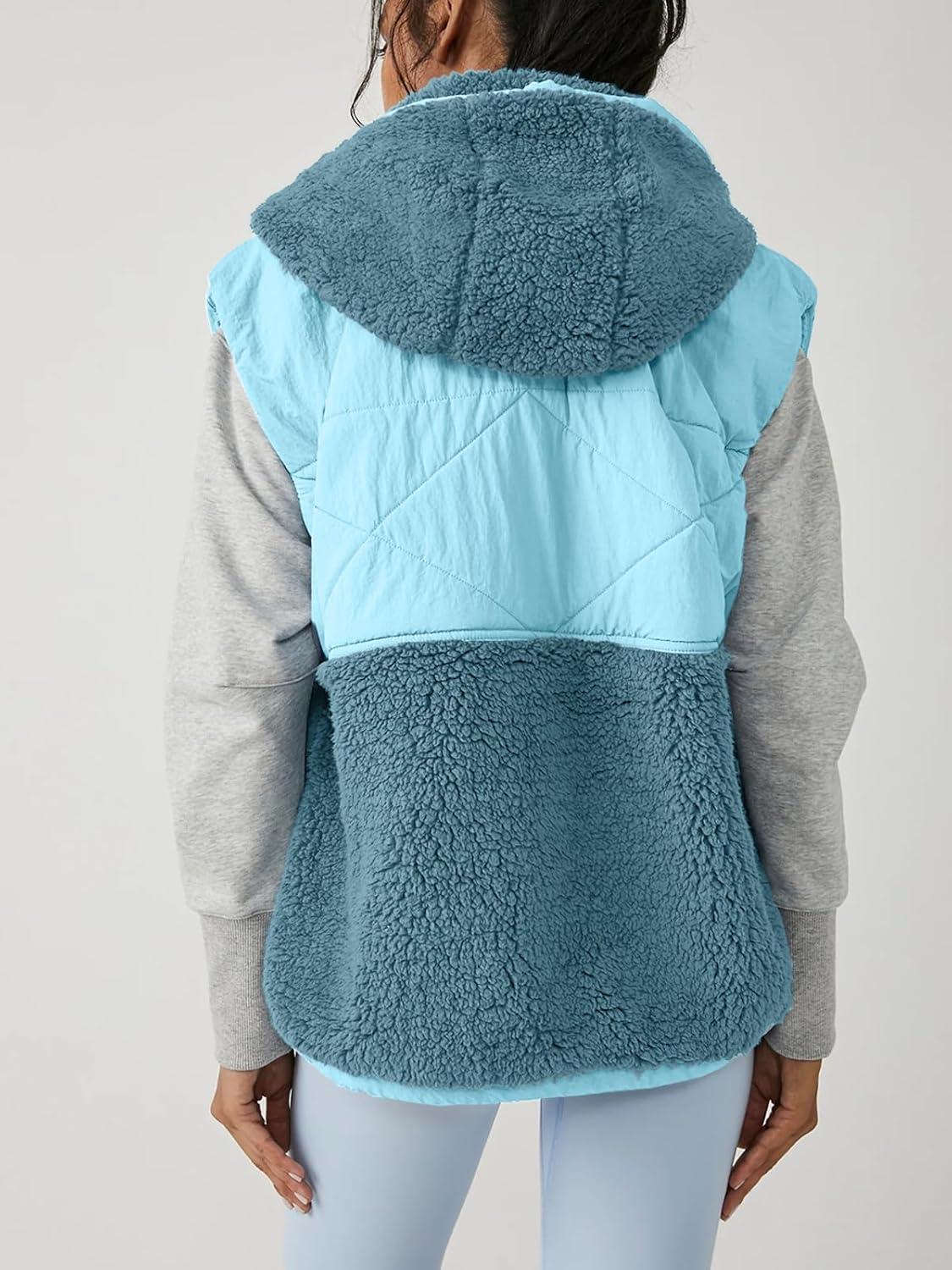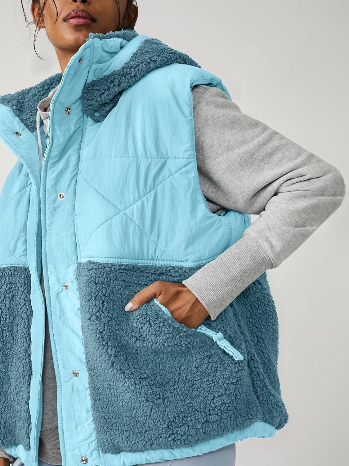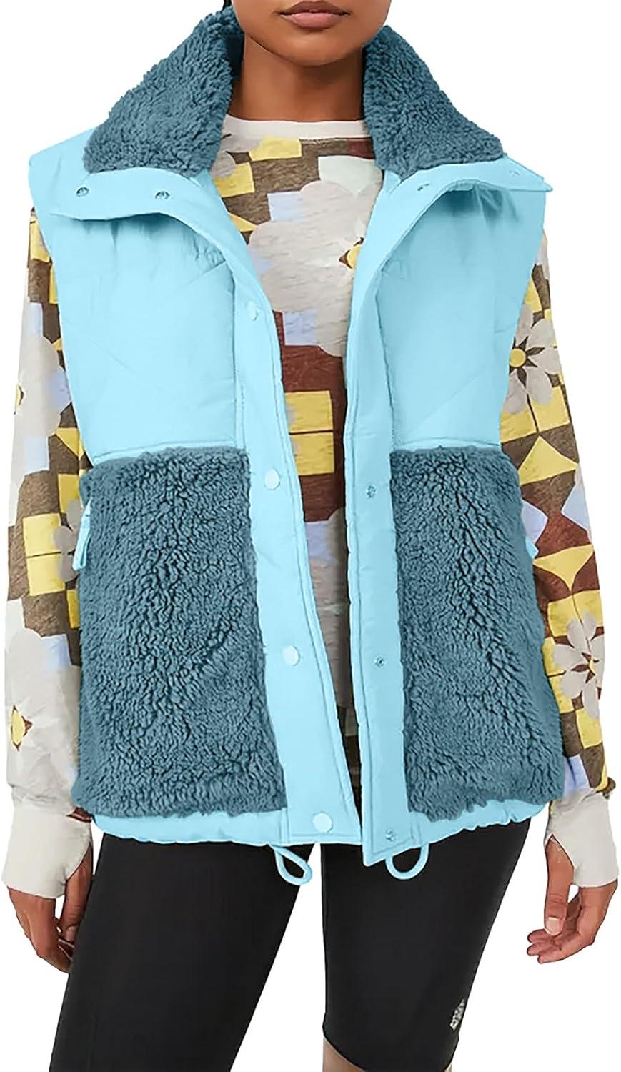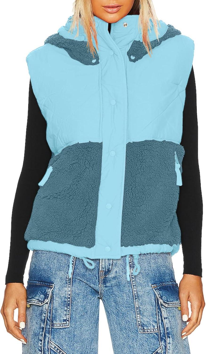 Imily Bela Womens Winter Sherpa Fleece Vest Stand Collar Button Down Sleeveless Jacket Casual Hooded Coat Outerwear(Light Blue)